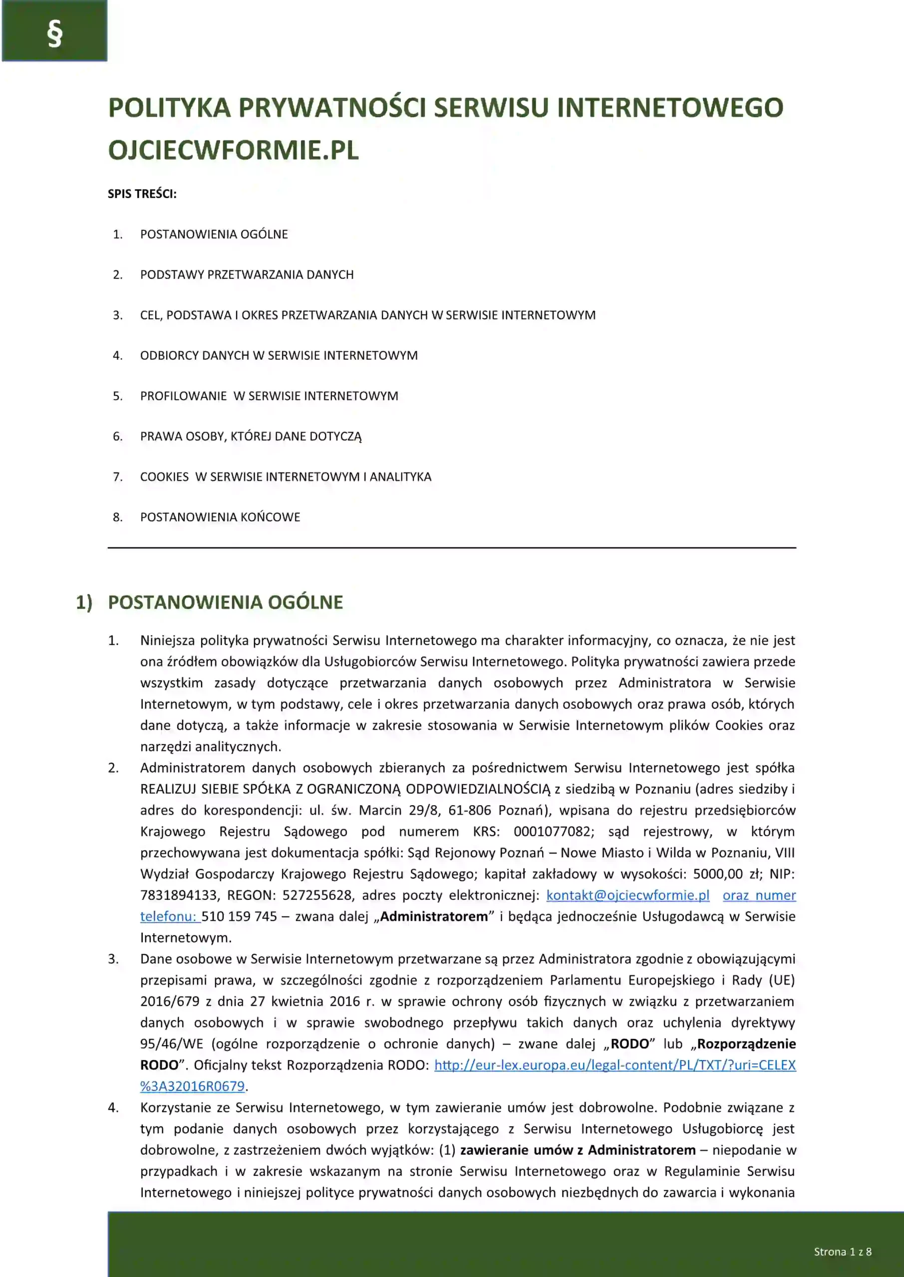 Polityka Prywatności serwisu internetowego ojciecwformie.pl